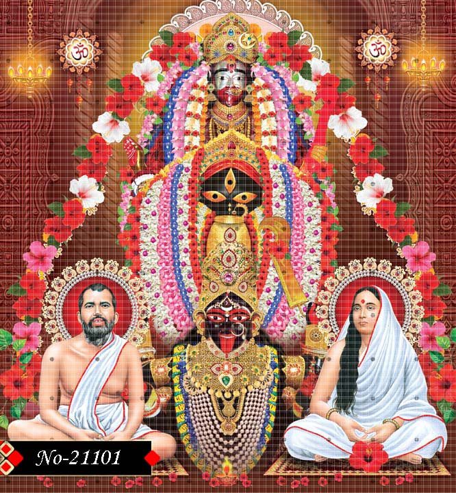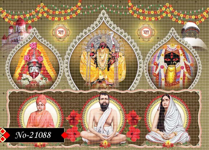 Sri Ramakrishna, Vivekananda and Sarada Devi beneath the divine light of Goddess Kali. 21099