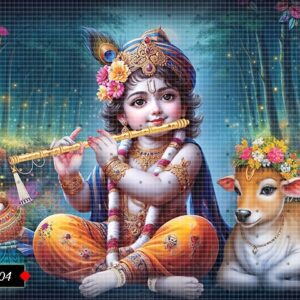 This mesmerizing image of Bal Krishna radiates joy, purity, and love. His divine innocence and peaceful gaze make this poster a beautiful symbol of faith and spiritual calm.