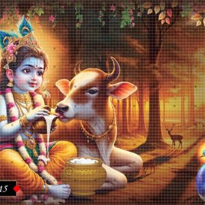 Bal Krishna looks adorable in this sacred poster. His smiling face, shining attire, and peaceful aura fill the space with divine beauty and a feeling of deep devotion.