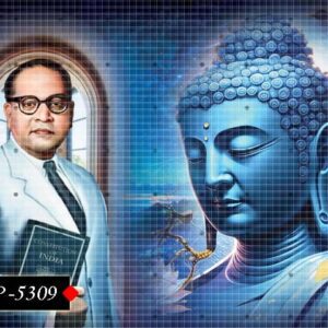 Here, Lord Buddha and Dr. Ambedkar appear side by side — one in silent meditation, the other in thoughtful determination.