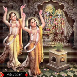 A devotional dance unfolds through the graceful postures of Chaitanya Mahaprabhu and Nityananda Prabhu. They are joined by the holy vision of Radha-Krishna filling the scene with timeless bhakti energy.