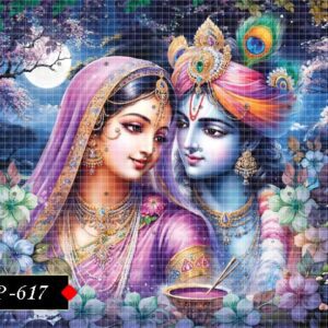 This devotional poster reflects Radha and Krishna’s unbreakable spiritual union.