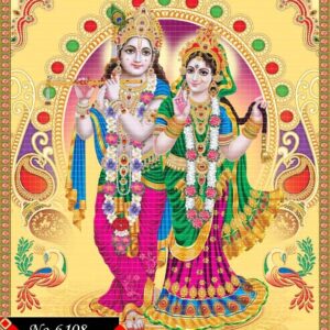 Lord Krishna and Radha stand in divine harmony,