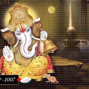 Lord Ganesha sits with divine poise in this vibrant poster.