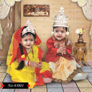 Here we see one baby boy and one baby girl, both irresistibly charming. The boy’s happy expression lights up the frame, while the girl’s innocent eyes reflect sweetness. Dressed in festive Indian wear, they embody the essence of childhood innocence wrapped in tradition.