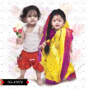 This photo beautifully presents a little boy and girl, their faces glowing with pure innocence. The boy’s happy smile adds brightness, and the girl’s charming eyes reflect grace. Their Indian outfits make them look especially adorable and festive.
