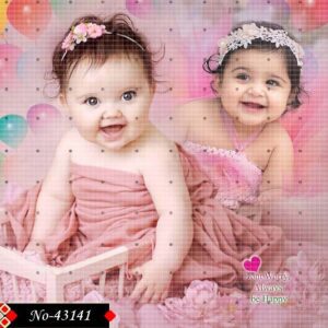 Radiating sweetness and joy, the baby girls’ expressions are full of gentle wonder. Their faces are like little mirrors of happiness. There’s a calmness in them that soothes the soul. They reflect a kind of love that is pure and unconditional. The image beautifully holds their quiet, joyful energy.