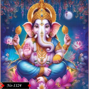 Bathed in a divine glow under the serene moonlit sky, this mesmerizing image of Lord Ganesha exudes peace, wisdom, and spiritual purity. Seated gracefully on a vibrant lotus and adorned with shimmering jewels, this artwork beautifully blends devotion and tranquility, making it perfect for prayer rooms and meditation spaces.