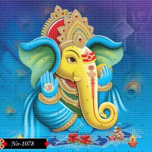 A delightful and colorful artwork of Lord Ganesha exuding warmth and joy. Set against a calming blue backdrop, this depiction features a playful yet divine expression, detailed ornaments, and the beloved mouse companion offering modaks. A perfect piece for children’s spaces, festive decor, or spreading positivity and good vibes in any corner of your home.