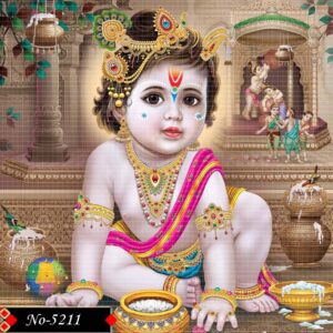 This enchanting digital artwork captures child Lord Krishna in a relaxed sitting posture. With a cute, divine smile and radiant face, he exudes innocence and peace.