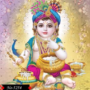 A lively and colorful digital creation of child Krishna, blending tradition with modern digital finesse. His ornate jewelry, vivid costume, and playful stance bring life and joy, making this a perfect piece for festive celebrations and spiritual decor.