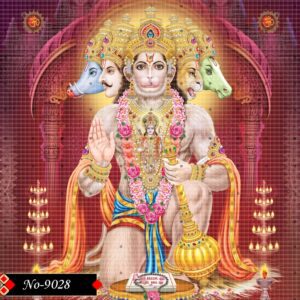 This detailed depiction shows Hanuman in his Panchmukhi avatar, a protector from all evils and granter of courage. The five heads symbolize unity of powers—devotion, strength, knowledge, purification, and protection. race.