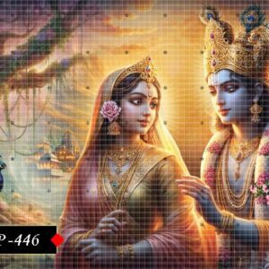 Devotional poster featuring Radha and Krishna in a moment of bliss. 446