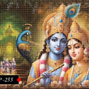 Devotional poster of Radha and Krishna filled with serene affection. 255