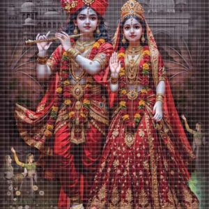 This devotional poster reflects Radha and Krishna’s unbreakable spiritual union.