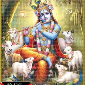 This enchanting digital artwork captures Lord Krishna in a relaxed sitting posture beneath the soothing shade of a tree. With a cute, divine smile and radiant face, he exudes innocence and peace. Adorned in vibrant attire and golden jewelry, Krishna is seen resting beside his beloved cow, symbolizing harmony with nature.
