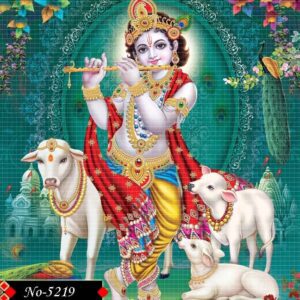 This mesmerizing image of child Krishna stands as a symbol of love, joy, and divinity. His cute expression, ornate golden accessories, and colorful dress bring a heavenly charm to the composition, perfect for invoking positive energy and devotion.