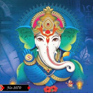 A radiant and contemporary depiction of Lord Ganesha, this artwork (No-1070) stands out with its vibrant blue tones and luminous detailing. Ganesha’s eyes exude wisdom and calm, while the intricate crown and jewelry reflect divine grandeur. With a glowing modak in one hand and a blessing mudra in the other, He brings both abundance and peace. The ethereal background with subtle mandala patterns and lotus accents adds to the spiritual energy, making it a perfect addition for modern puja rooms and artistic décor.
