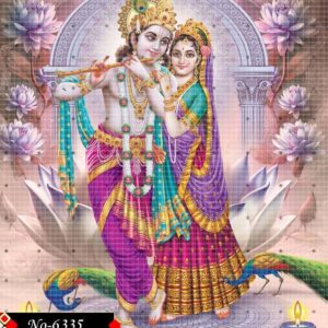 This divine portrait of Radha and Krishna glows with spiritual energy. Radha’s warm smile complements Krishna’s peaceful expression. Their eyes speak volumes of love and trust.