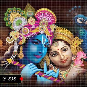 This divine poster portrays Radhakrishna with spiritual depth. Their shimmering ornaments and elegant attire radiate purity. A soft light glows around them, symbolizing peace. Ideal for meditation or prayer areas.