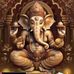 A mesmerizing depiction of Lord Ganesha crafted in a rich wooden style, embodying timeless grace and spiritual strength. The earthy tones and intricate carvings evoke a sense of deep devotion and natural beauty, making it a perfect symbol for auspicious beginnings and inner peace.