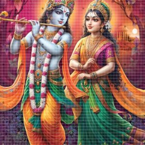 Elegant poster glorifies Radha and Krishna’s divine companionship. 230