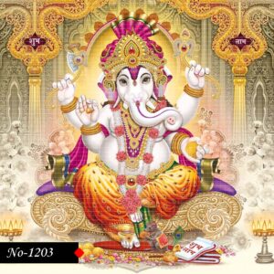 In this artwork, Lord Ganesha is depicted seated gracefully , symbolizing purity and spiritual enlightenment.