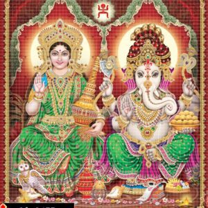 This mesmerizing depiction of Ganesha and Lakshmi unites power, peace, and prosperity. Ganesha’s composed strength complements Lakshmi’s flowing grace. Every fold of cloth and every jewel tells a tale of divine tradition. Their postures radiate balance and reverence. Golden tones and sacred symbols enhance the image’s divine effect. This artwork celebrates the ultimate blessings of life. An icon of devotion, wisdom, and spiritual abundance. A divine duo etched in timeless beauty.