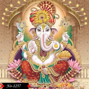 Adorned in vibrant attire and seated on a blooming lotus, this majestic form of Ganapati Bappa radiates wisdom and prosperity. This artwork captures the essence of Hindu God Ganesha as the remover of obstacles and harbinger of new beginnings.
