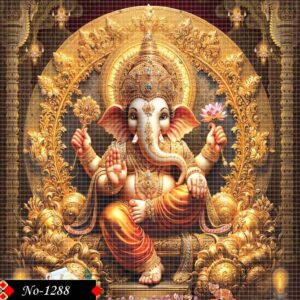 This artwork features a majestic depiction of Lord Ganesha in a relaxed, exuding a sense of calm divinity and royal elegance. The detailed background and golden tones amplify the image’s spiritual energy, making it a perfect embodiment of peace, wealth, and divine wisdom.