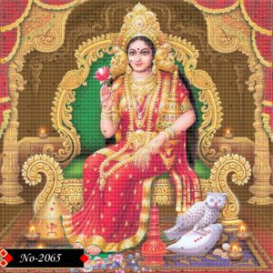 Adorned in a red saree with golden embroidery, she radiates divine aura.