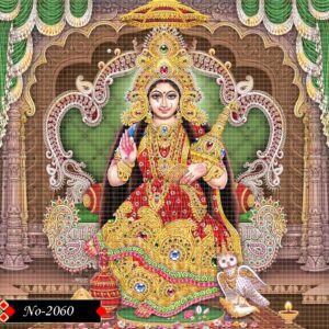 Goddess Lakshmi is seated on a Royal throne. She is draped in an elegant saree .