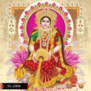 She pours rice from a kalash, symbolizing endless wealth.