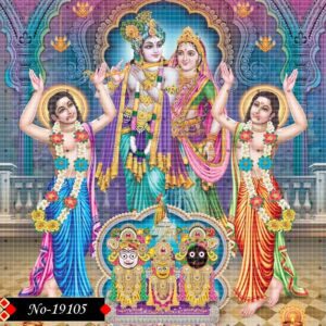 The dance of Gour and Nitai breathes life into this sacred image, as their traditional attire flows with every movement. The divine glow of Radha-Krishna and Jagannath, Balram, and Subhadra completes the scene, illuminating the power of spiritual love.