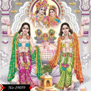 Chaitanya and Nityananda, drenched in spiritual joy, are shown dancing in grace and devotion. Behind them, the serene forms of Radha-Krishna and the deities of Jagannath, Balram, and Subhadra radiate divine brilliance—together manifesting the soul of Sanatan Dharma.