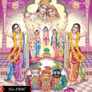 A devotional dance unfolds through the graceful postures of Chaitanya Mahaprabhu and Nityananda Prabhu. They are joined by the holy vision of Radha-Krishna filling the scene with timeless bhakti energy.