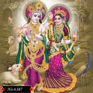 Radha stands adorned in purple silk, full of devotion.