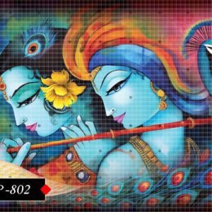 This enchanting poster highlights the divine form of Krishna and Radha. Their glowing skin, beautiful outfits, and sparkling ornaments captivate the eyes. The surrounding aura suggests a deep spiritual presence. A graceful image for a peaceful atmosphere.
