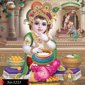 In this visually rich digital painting, Lord Krishna appears divine and majestic, eating his favorite makkhan . His face exudes purity and serenity, highlighted by lavish golden jewelry and a beautifully detailed background. A true representation of spiritual beauty and mythological magnificence.