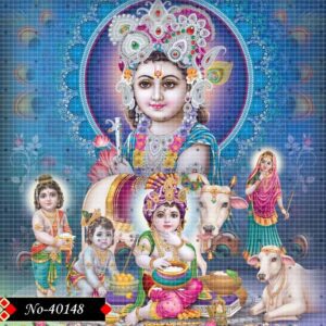 This spiritual artwork portrays Lord Krishna in harmonious and radiant forms.