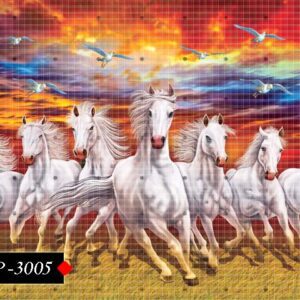 This picture captures seven horses advancing in unison, embodying motion and energy. Their alignment reflects unity and determination. In Vastu, such depictions are considered highly favorable for progress and prosperity. The image is said to attract wealth, positivity, and harmonious growth. It radiates vigor and achievement.