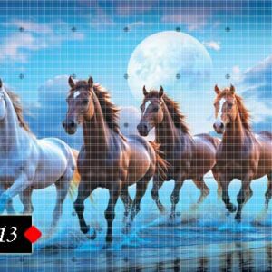 The image portrays seven horses moving together with immense power and rhythm, creating a sense of unstoppable drive. Their harmony reflects unity and courage. According to Vastu, this image is a symbol of prosperity, progress, and balanced energy flow. It is often recommended to attract success and positivity. The visual as a whole speaks of strength and advancement.