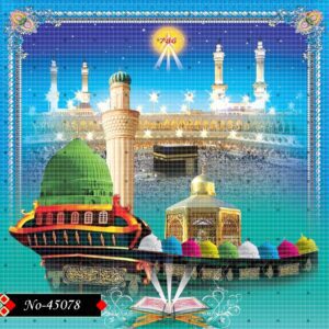 This Islamic design merges traditional art with spiritual meaning, showcasing symbols of faith, such as mosques, crescents, and Arabic calligraphy. It evokes harmony, reverence, and a sense of eternal peace.