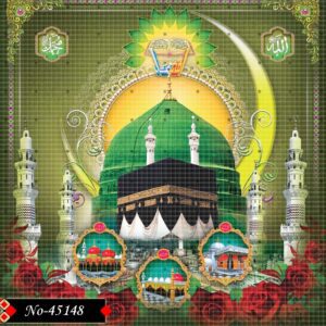 This Islamic design merges traditional art with spiritual meaning, showcasing symbols of faith, such as mosques, crescents, and Arabic calligraphy. It evokes harmony, reverence, and a sense of eternal peace.