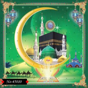 In this elegant digital creation, the sacred number 786—signifying Bismillah—takes center stage, surrounded by the serene landscapes of Makkah and Madinah. Gentle tones and golden light breathe life into the spiritual atmosphere, celebrating devotion, faith, and the timeless grace of Islamic tradition.
