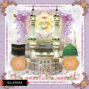 This artwork is a visual embodiment of Islamic faith, radiating peace and devotion through sacred symbols and serene design. The calm color palette and intricate details invite the viewer into a moment of spiritual reflection.