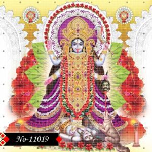Kali Ma, in this divine portrayal, stands not just as a goddess but as the cosmic force of life and death. Her raised arms, bloodied weapon, and fearsome tongue signify the ferocity of divine justice. Yet, there is calm in her chaos — seen in the serene face of Lord Shiva beneath her feet. The garland of human heads around her neck isn’t grotesque; it is a statement of victory over the vices of the world. Her elaborate crown and ornaments suggest the richness of divine power, while her posture reflects the ultimate surrender and divine realization. Each symbol — from the trident to the lotus base — ties the spiritual and material worlds together. This image isn’t just art; it’s a meditation on destruction as a path to renewal. Kali here becomes the mother of cosmic transformation.