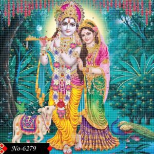 Krishna and Radha stand amid divine beauty and serenity 6279