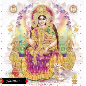 Her attire gleams with divine radiance and finesse.