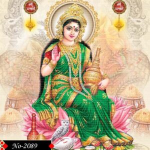 Lakshmi Mata glows in traditional attire of gold, and green.